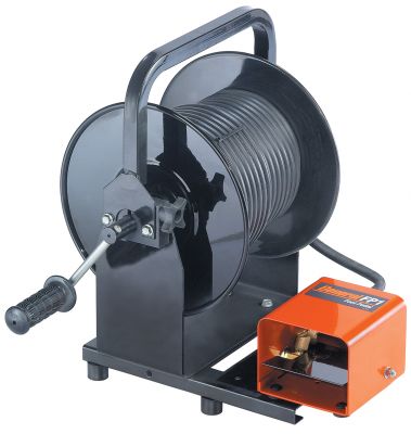 For use with any sewer jetter, the compact 200 ft. capacity Handy-Reel can be attached to a gas jetter so you can use the power of the gas-powered water jetter inside a building. Or it can be taken up on a roof to clear vents while your sewer jetter remains securely on the ground below. The foot pedal gives you added safety. Water flows when you step on the pedal and stops when you lift your foot, so you have both hands free at all times to control the hose. (Cat. HM-200-W) The foot pedal is also available separately. (Cat. FM-1)